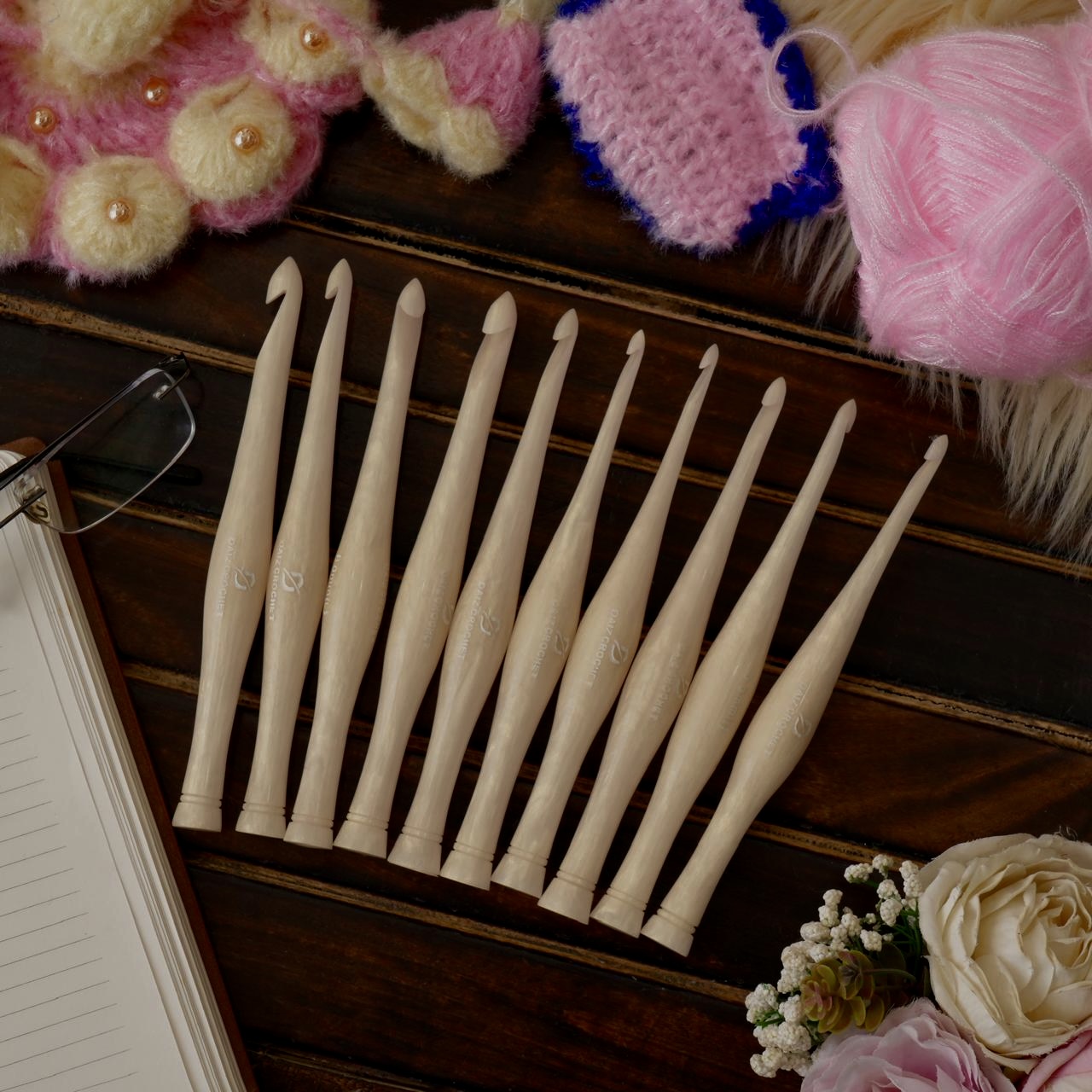 Whether you’re designing cozy blankets, soft toys, or stylish wearables, this ivory resin crochet hook set brings timeless beauty and comfort to your creative process.