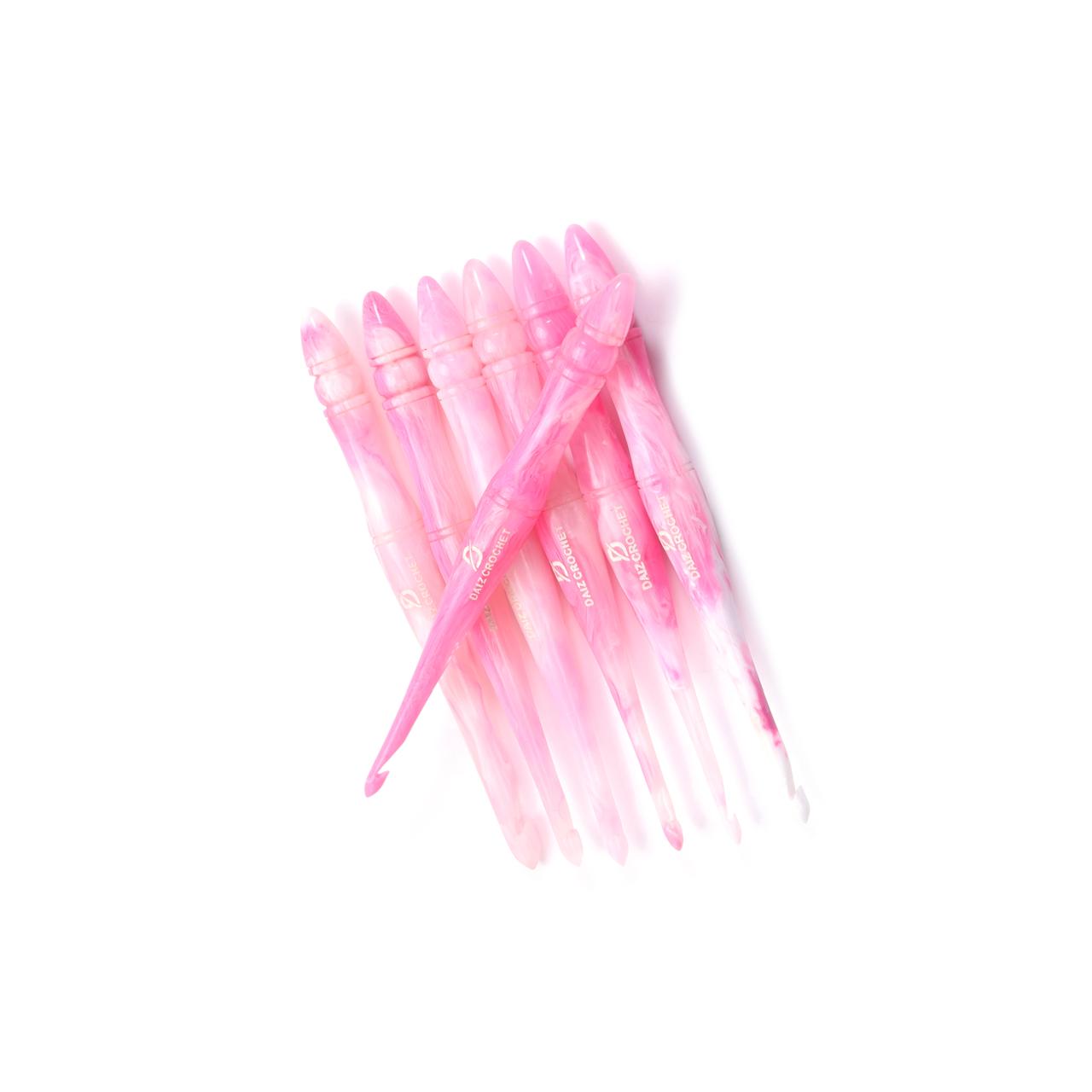 Add a touch of charm to your crochet collection with the Handcrafted Pink Resin Crochet Hook Set by Daiz Crochets. Made from premium quality resin, each hook showcases a stunning swirl of soft pink tones that make your crafting experience both beautiful and comfortable.