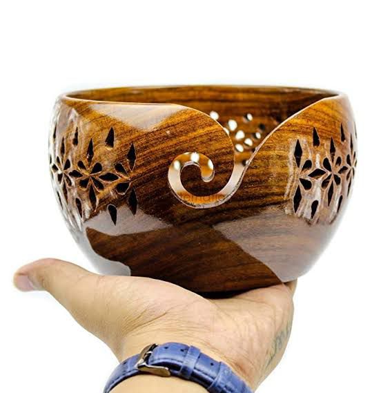 wooden yarn bowl, handcrafted yarn holder, yarn organizer, knitting accessories, Daiz crochet tools, wood craft bowl, crochet storage, handmade yarn bowl India, artisan wooden crochet tools