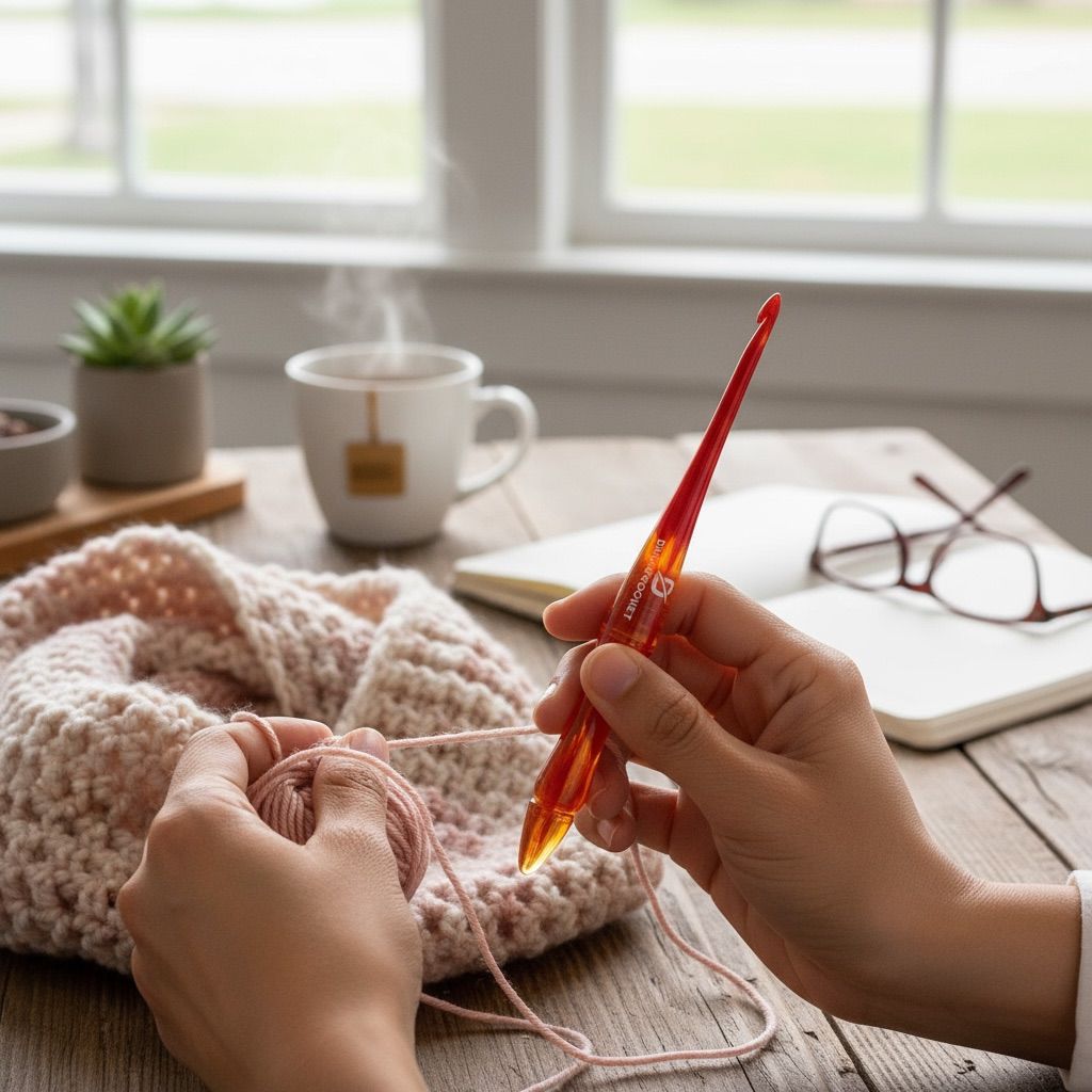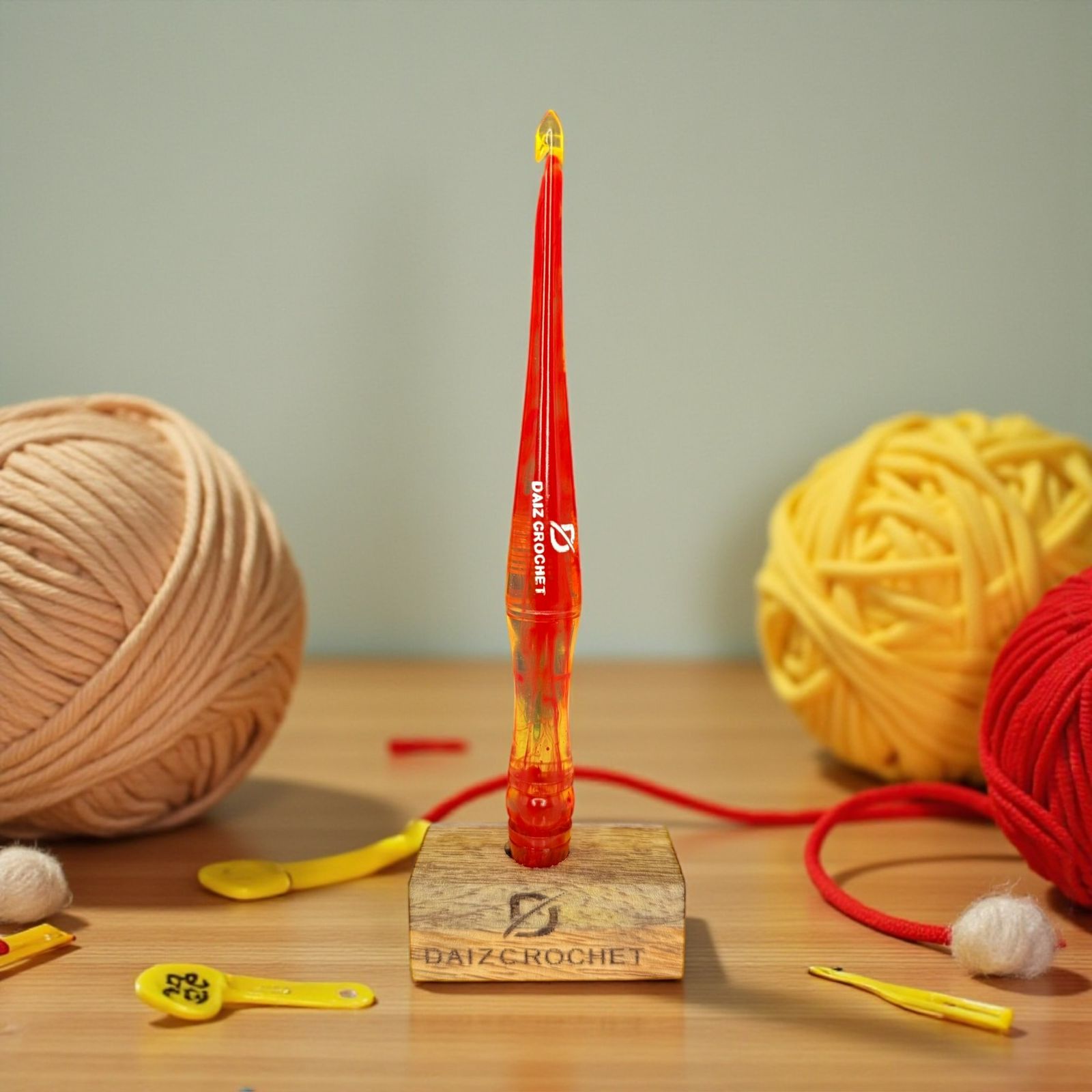 Bring color, comfort, and performance to your crochet projects with this Handmade Luxury Resin Crochet Hook Set by DAIZ Crochet. Designed in a striking red and amber translucent blend, each hook is carefully handcrafted to deliver a smooth yarn glide and a balanced ergonomic grip.