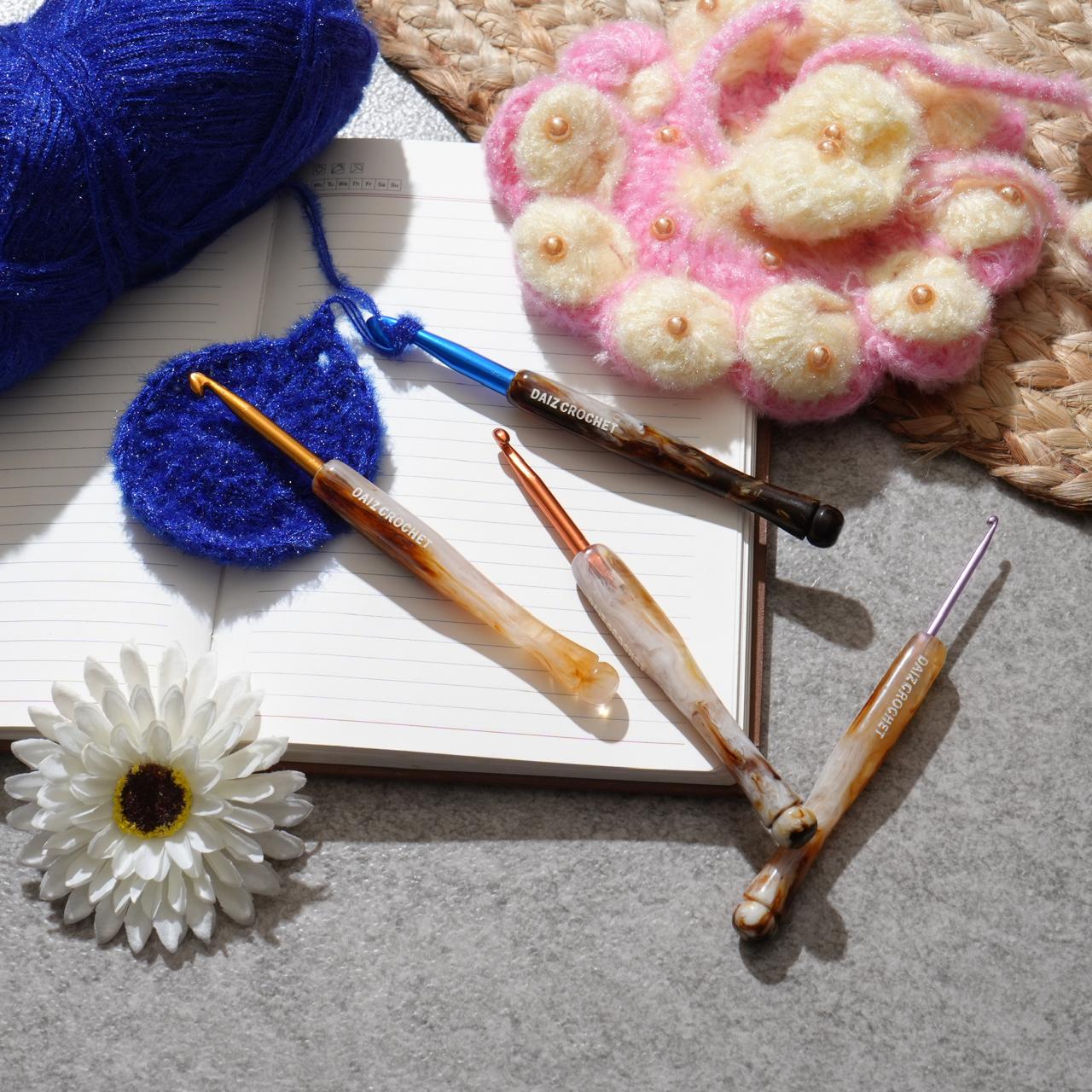 Bring color, comfort, and creativity to your crochet experience with our Premium Multicolor Crochet Hook Set from Daiz Crochets. Each hook in this set combines a vibrant anodized aluminum head with a handcrafted resin handle, designed for both beauty and performance.